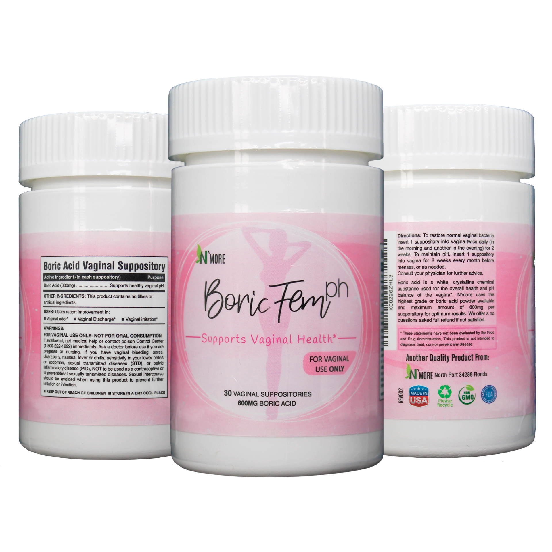 BORIC FEM está formulado con 600 mg de ácido bórico grado médico, la dosis recomendada para restaurar el equilibrio del pH vaginal y combatir infecciones de forma segura y efectiva.